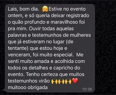 Também iremos oferecer uma oportunidade especial para conhecer a Jornada Bendita Maternidade, um programa de acompanhamento profundo para mulheres que desejam viver cura interior, fortalecimento emocional e restauração espiritual.