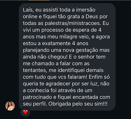 Você tentante ou mulher com histórico de perda gestacional, irá me agradecer por tudo que irá aprender nessa imersão. Pode escrever!